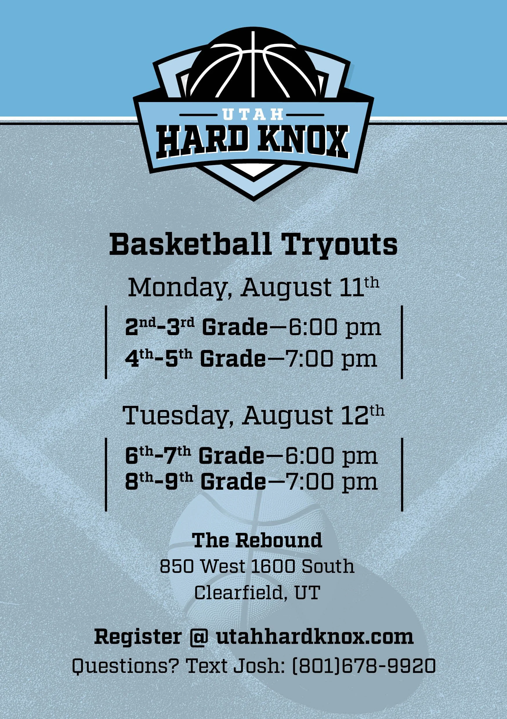 HARD KNOX Basketball Club has been serving the northern Utah basketball area for 13 years and has 20+ competitive teams between the girls & boys programs every year. The competitive boys program offers teams for 2nd grade - High School and the competitive girls program starts at 4th grade and goes through High School as well. We offer multiple teams per grade that are broken up into skill levels.
